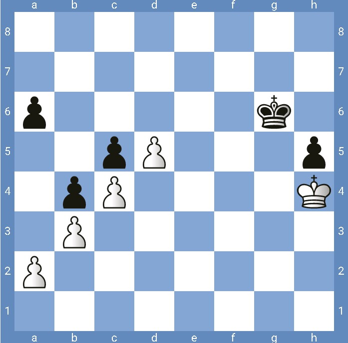 Parece que después de 1.d6 las negras ya están perdidas en esta posición, porque en el futuro perderán el peón de c5. Sin embargo, a las negras le salvará un detalle, pues su peón está en a6 y no en a5, y allí encontrarán un refugio.