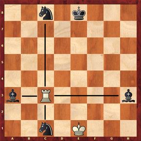 Aquí el CABALLO blanco puede capturar cualquiera de las torres enemigas, así como al caballo y alfil negros, sin que la presencia de peones del bando enemigo, y el peón propio, intercepten su campo de acción.