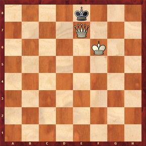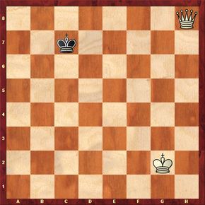 En el siguiente diagrama podemos observar un ejemplo práctico para entender el tema del REY AHOGADO. En él, se reproduce un final básico de REY y DAMA contra REY. La victoria es muy fácil y evidente cuando se ha practicado lo suficiente, PERO HAY QUE EVITAR EL SIGUIENTE AHOGADO.